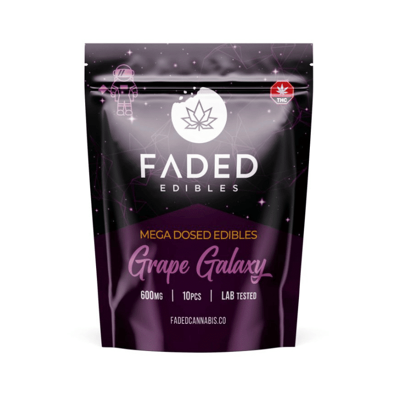 Discover Faded Cannabis Co. Grape Galaxy 600mg THC Gummies – Bold Grape Adventure, a quality cannabis product from Prime Buds.